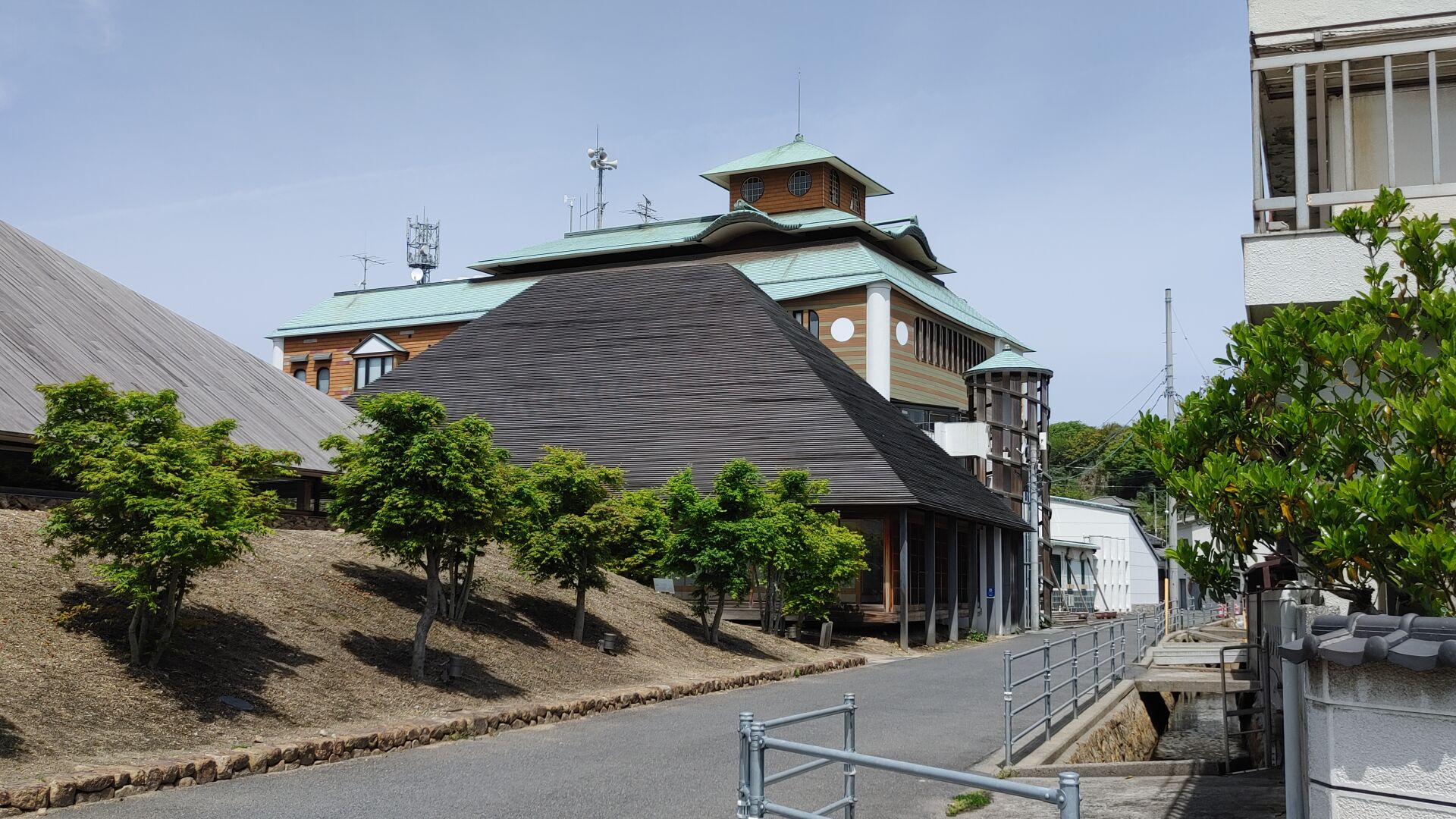 ragingHungryPanda Naoshima community center. The constructed the building with a buildup of dirt and moss on the side to help keep the building cool. There is a garden and small pond with some fish. #travel #japan #naoshima #art #digitalnomad